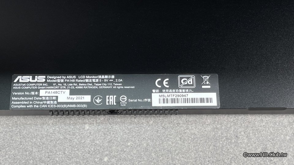 背面還有一張貼紙,出廠日期 2021/05,右邊是產品序號,