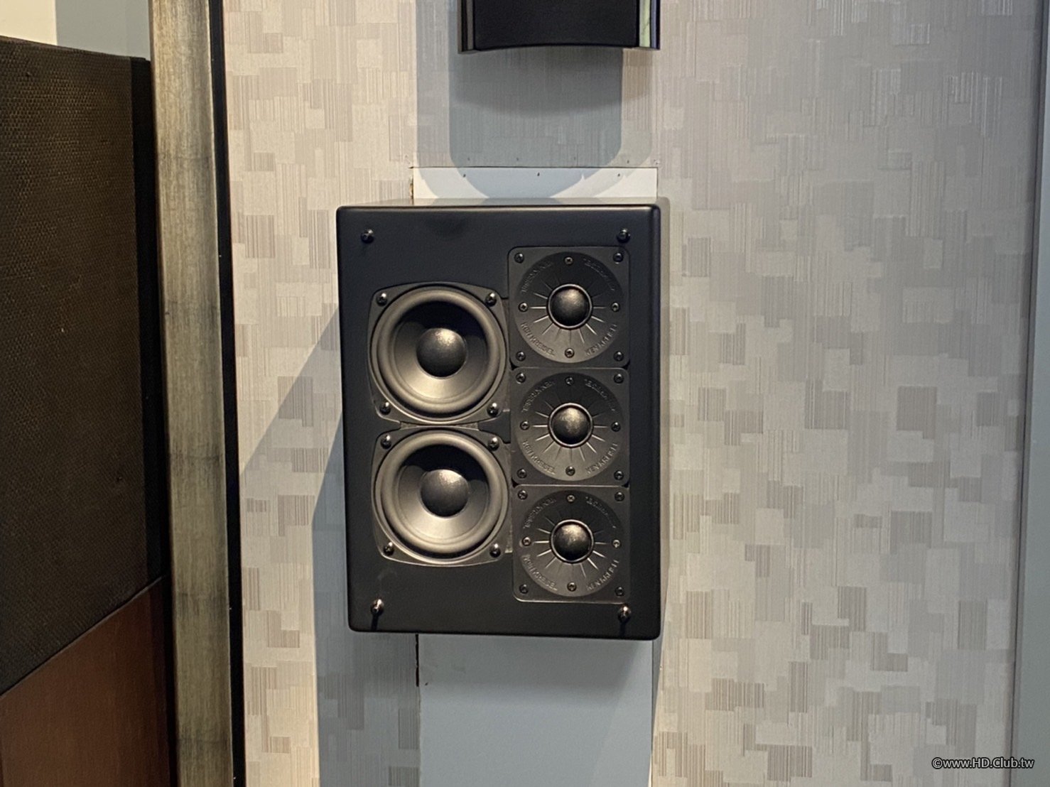 正面喇叭結構:高音:2個KK低震動高音單體,1個專利導管式單體;低音:2個4寸高靈敏度單體