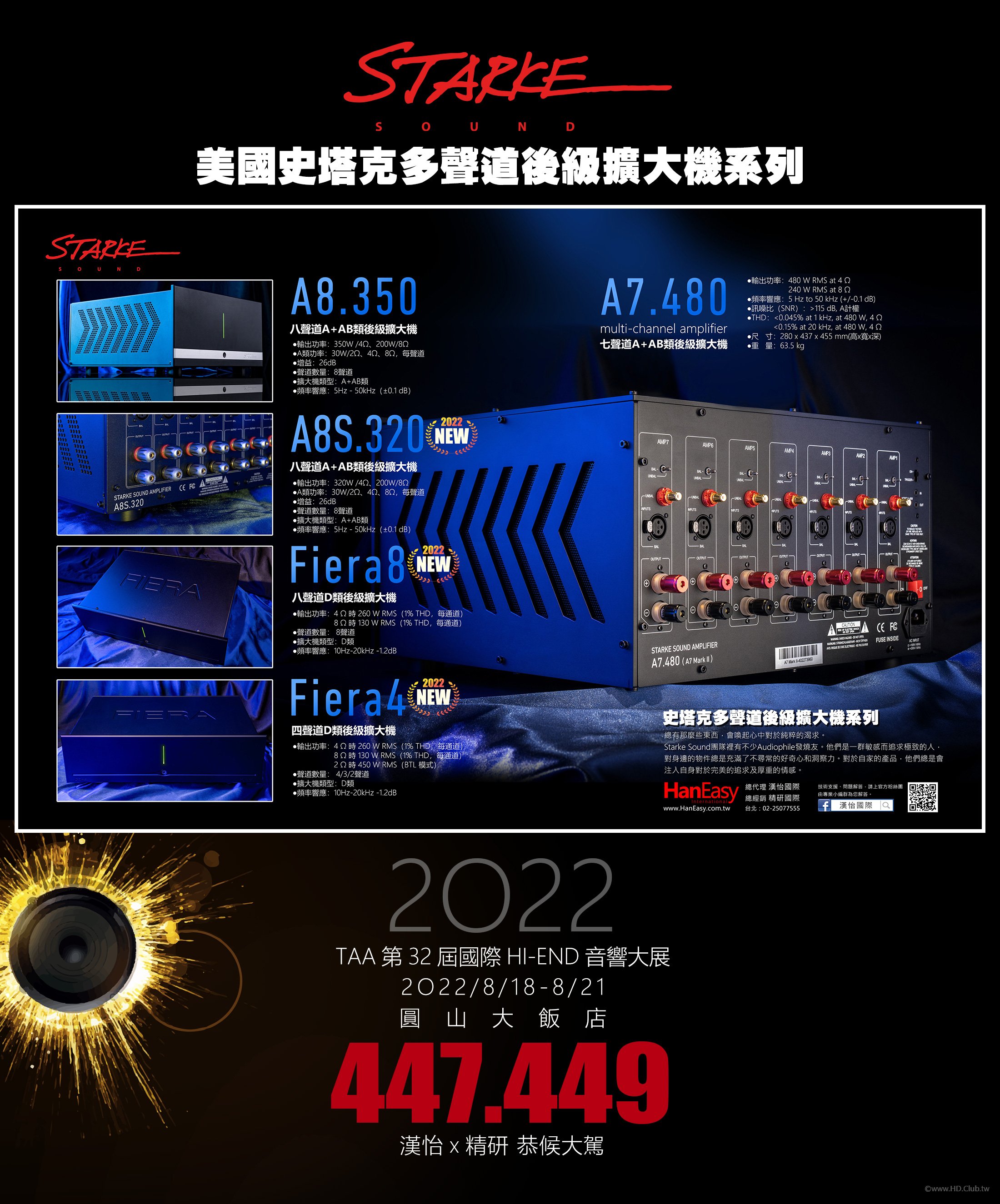 美國Starke 史塔克聲學最新力作Starke A8S.320 八聲道後級、Fiera 4 四聲道後級,也首度登台!