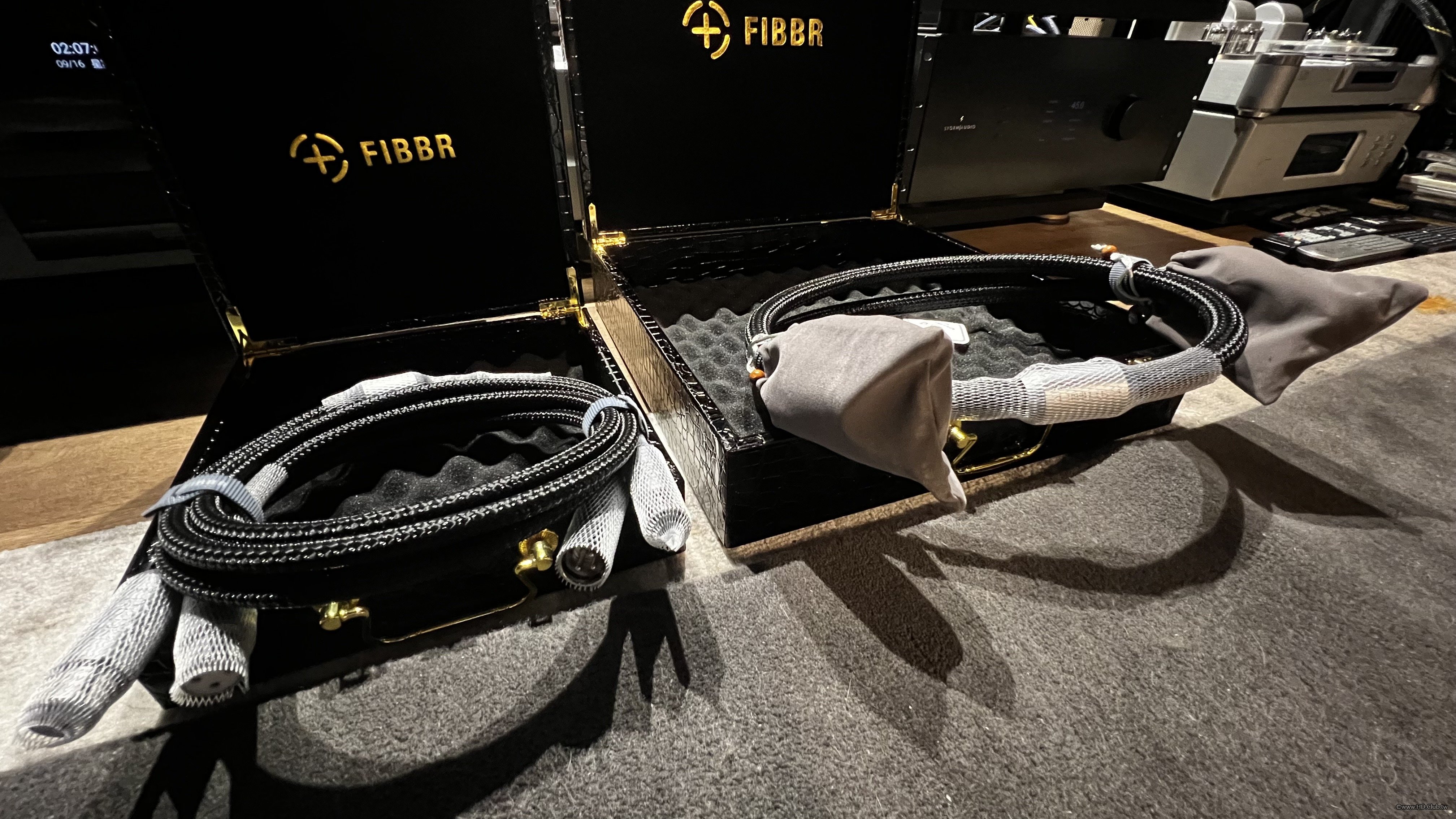 這次有幸參與FIBBR冰晶鍍銀電源線及平衡訊號線的集體評測,也是抱持相同的理念。FIBBR菲伯爾以其在光纖線材的龍頭之姿,擁有自己的光纖製造廠,公司坐擁上百億資產,決定要轉進類比Hi-end的線材領域,驚訝之餘,弟當然更好奇擁有近乎無限資源的光纖廠做出來的金屬線是什麼狀態。據悉其實FIBBR的冰晶線早在一年多前就已經有樣品出來,但是為了能夠一戰成名,原廠花了許多的時間進行材質比例與作工細節的調整而不願貿然發表甚至出貨。弟個人非常佩服這樣悉心投資時間金錢研發的產品,因為這樣的研發態度一定能做出好東西!當終於看到實品開箱,我不禁驚呼:「這太誇張了!」FIBBR冰晶鍍銀線系列的盒子竟然走時尚精品風格,仿鱷魚皮的箱體和類金屬材質的提把及扣具都與FIBBR光纖線低調素淨的包裝大異其趣,讓人愛不釋手反覆玩味。FIBBR冰晶鍍銀線的行銷團隊不簡單,此系列光是包裝盒就話題性十足而且特異獨行,令人印象深刻!說實在為了包裝盒買線這樣的可能性不知道有沒有,但是這包裝倒是讓我看到FIBBR對於購線消費者的用心與對自己產品的信心!