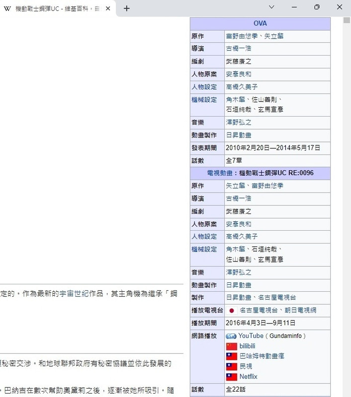 樓上二位能不能說清楚字幕要的是哪一種?這部有分OVA版的,共七集,也有電視動畫版的,共二十二集,小弟這裡手頭有的是OVA版的,二位要的是電視動畫版的那字幕就不合用,還是都沒差?二位能自行處理呢?當初我看的是電視動畫版的,有「稍微」爬文與在他處發問,播出的內容「似乎一樣」,但小弟沒親自看過OVA版,無法確定,何況電視動畫版播出的時間就已經是數年前的事,細節也記不太清了,更無法分別這兩者之間有無差異,這裡說的差異不是單把OVA拆分播出這種差異,而是播放內容有無因播出媒介的不同或是其他原因而造成不同,簡單舉例,一集OVA拆分成三集,那共為二十一集,那多出來的一集是電視動畫版原創的呢還是其他?電視動畫版有無因配合季番播出的時間而新增或刪減內容呢?如有,小弟手頭上的字幕就不合二位使用,所以請把問題說清楚再來求字幕,下方的圖是從維基百科和Netflix官網截的,OVA維基百科就沒寫有平台上架,但Netflix就是有(小弟是找香港才有),我也不可能一一去查有無網站把上架平台的相關消息寫得更為準確的,更何況外站都有人抽出OVA蓝光裡的sup可供下载了,理論上也能直接使用,求都不用求,假如要二十二集版的可能就得花時間找還不一定有,甚至巴哈姆特、gunduminfo等官方平台都沒有電視動畫版,沒片源連O都沒辦法O,就小弟目前所知bilibili還有,但鎖區,而且是簡中硬字幕(可能是,因為鎖區無法確認),這字幕我想二位也不要吧