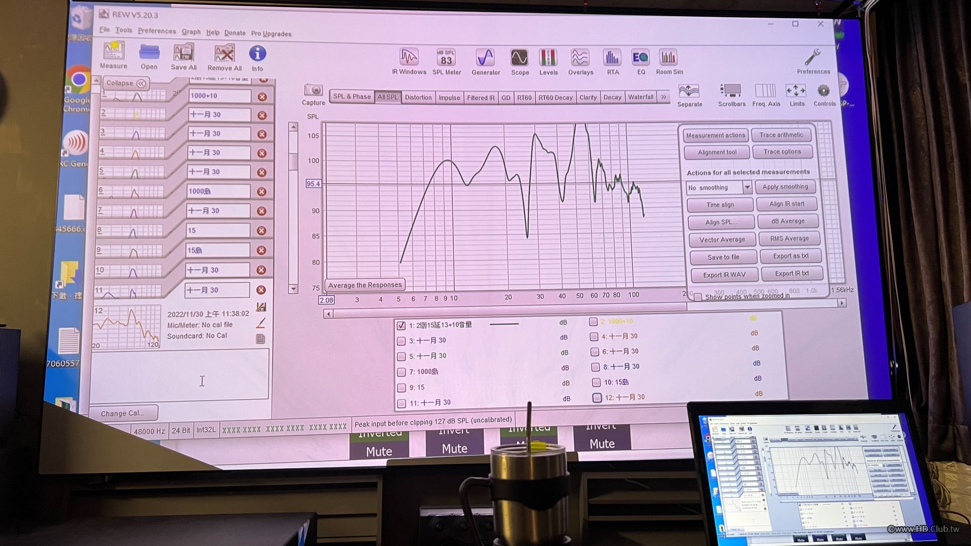 REW+minidsp靠人工Ai運算完成後,跑出來的曲線30-80hz果然平順許多,但是客廳黨的噪音還是被朋友們取笑了????????香腸圖長的陰毛特別多