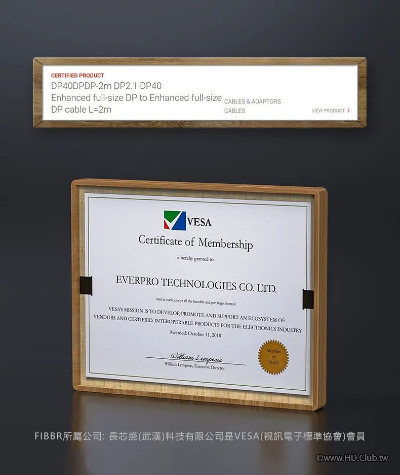 FIBBR近期推新的Real系列DP線,就是一款通過了VESA官方權威認證,滿足最新DP2.1標準規範的電競級超高畫質線材。