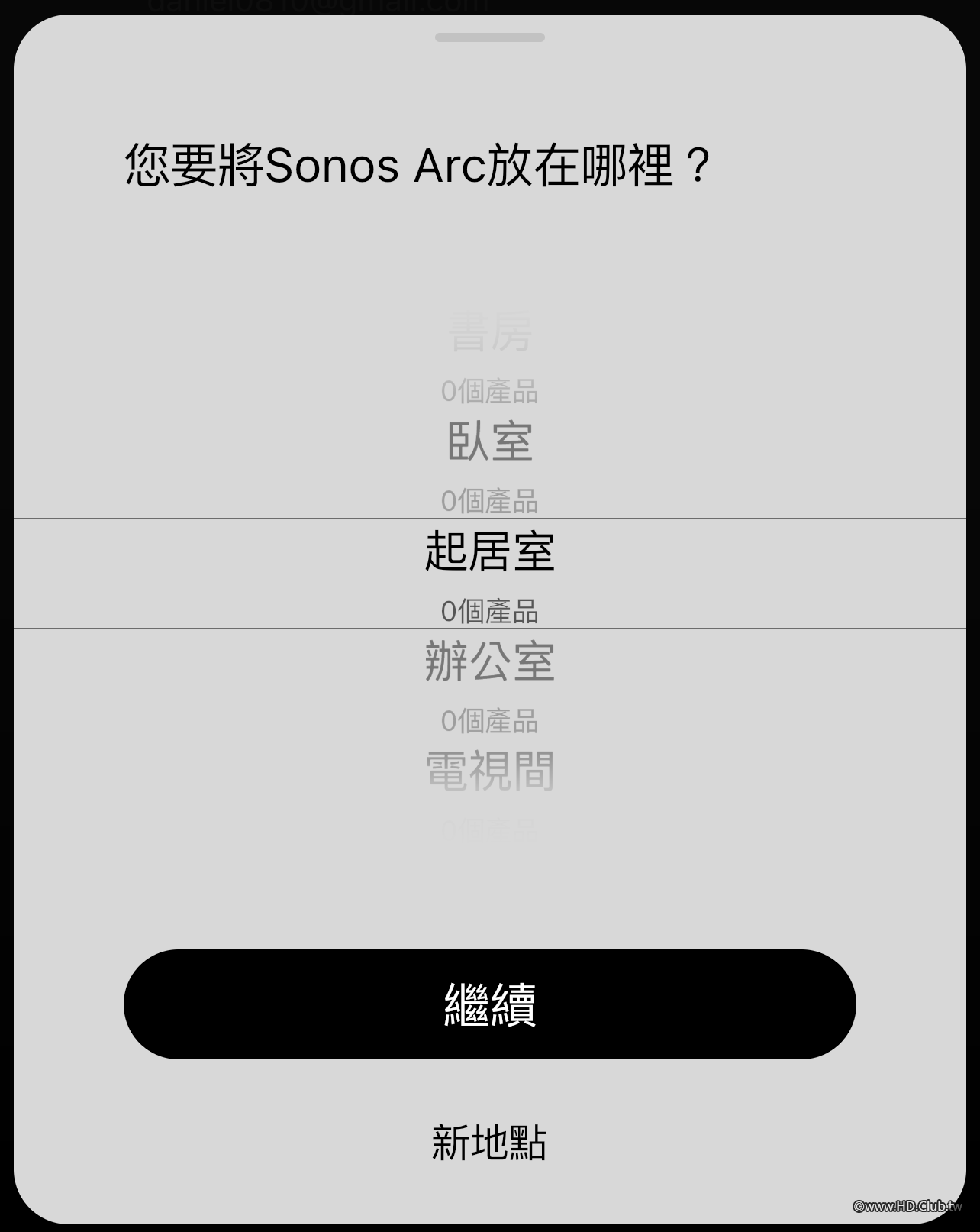 接下來是指定揚聲器所在地,這是為了方便從APP去控制在各區域不同的SONOS系統,包含在各區域增刪揚聲器,以及選擇一個或多個區域播放及選擇播放內容等重要功能。