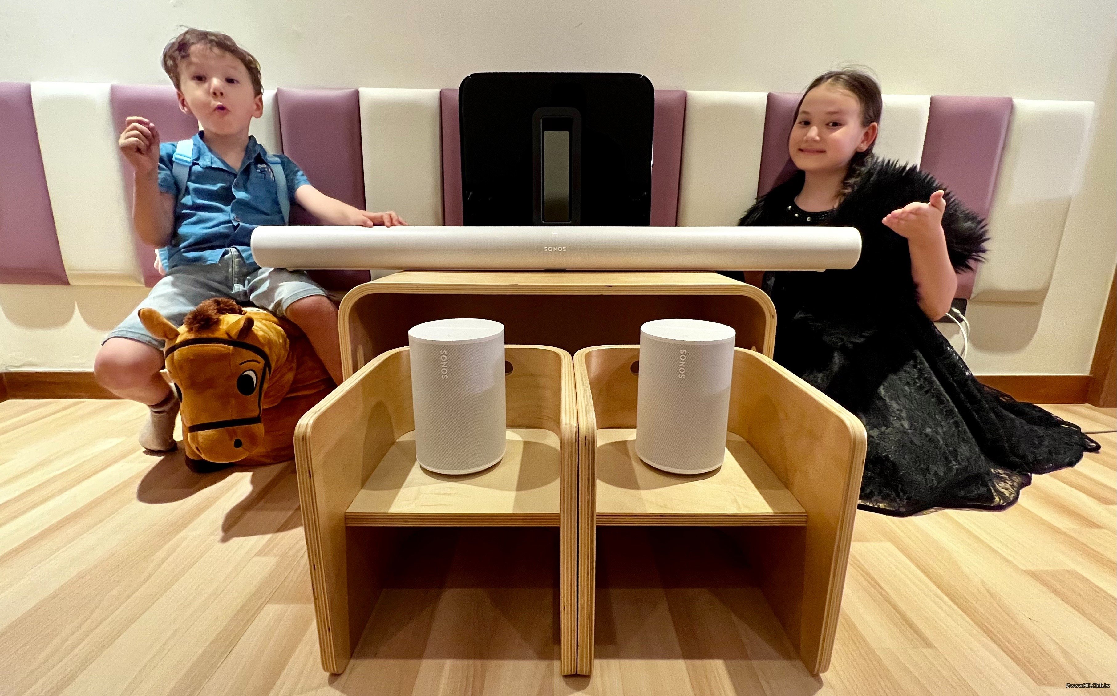 我自己是一個長期聽慣大套系統的人,在自己的視聽室就是一套24聲道的劇院系統,每次看個電影都要開前級,等劇院前即啟動後再將所有後級電源打開,算算我有6台後級,在視聽室往往眼前擺著好幾支遙控器,每次要讓系統唱歌演電影都非常地有「儀式感」。而使用SONOS則是完全不一樣的事!看不到擴大機沒有喇叭線甚至要操控連個鈕都不必,直接動口:「Hey, SONOS...」這可是會上癮的。SONOS這組聲霸劇院設定容易,穩定,支援度沒話說,而且娛樂性十足。確實它滿足了我當初所有的條件而且還帶來意想不到的驚喜!現在反而是爸爸會和小孩搶著玩SONOS~~~