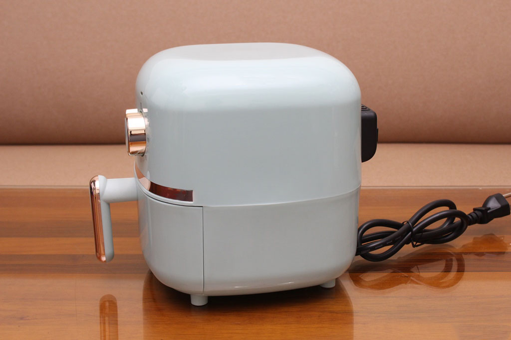 ▼Mignon新復古輕巧氣炸鍋本體一覽,外觀非常有質感,採用亮面烤漆處理,中間、旋轉鈕與拉把都有電鍍飾環,讓整體質感再提升