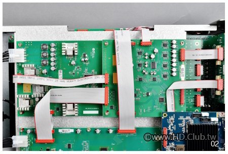 01 本機的數位音訊處理電路裝了單晶片系統66AK2G12加上兩枚AnalogDevices SHARC 450MHz DSP晶片ADSP-21489、還有兩枚XilinxSpartan-6 XC6SLX9 FPGA晶片。
