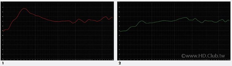 我在Signature SUB 2校正之前就先用REW測試過一次頻率響應(低通頻率設在80Hz),在ARCGenesis為它測試校正過後又測了一次,這回我還故意不選本刊視聽室擺超低音喇叭的最佳位置、而是次佳的位置,就是故意要來考驗它空間校正的能力。結果出爐:在校正前20Hz至80Hz之間超低音頻段響應的峰谷落差約為15dB,在校正之後則大幅降低至6.6dB、也可以說是±3.3dB以內的範圍。說到這裡我希望各位明白一些事實:如果超低音喇叭沒有提供校正功能、或者是玩家不會使用校正的狀況下,就算你號稱擺位功夫了得,實際做頻響測試要能在峰谷落差20dB(±10dB)以內都不容易,即使現在某些器材已經應用DRC技術,在校正之後能控制超低音響應起伏在±3dB左右已經是很了不起的成績,所以儀測結果可以證明Signature SUB 2的頻響正確性即使在今天仍然是最頂尖的。我還利用40Hz以下各頻率的正弦波與RTA觀察Signature SUB 2的最低有效頻率、二次諧波與諧振產生噪音的狀況,我可以確定它的最低有效頻率真的低到7Hz(且能量高於背景值頗多),在聆聽位置實測(非實驗室條件)10Hz的滾降僅僅只有3.5dB左右、且能量高於二次諧波20dB以上,我非常確定它是我近年測過極低頻延伸能力最強、響應最平坦的超低音喇叭、沒有之一!