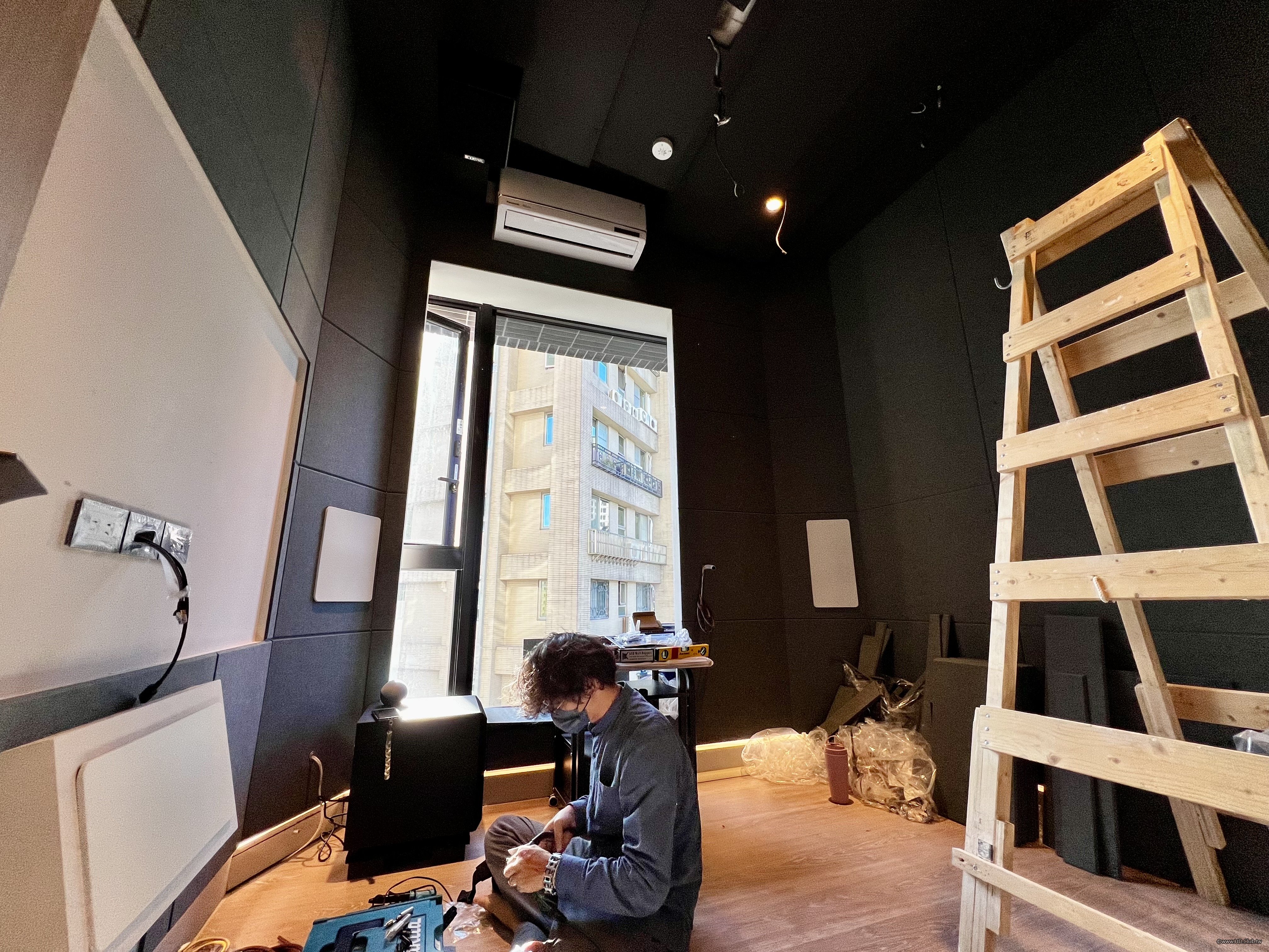 「小空間貼了吸音板,吸收了高頻的反射,讓聲音更加清晰。」