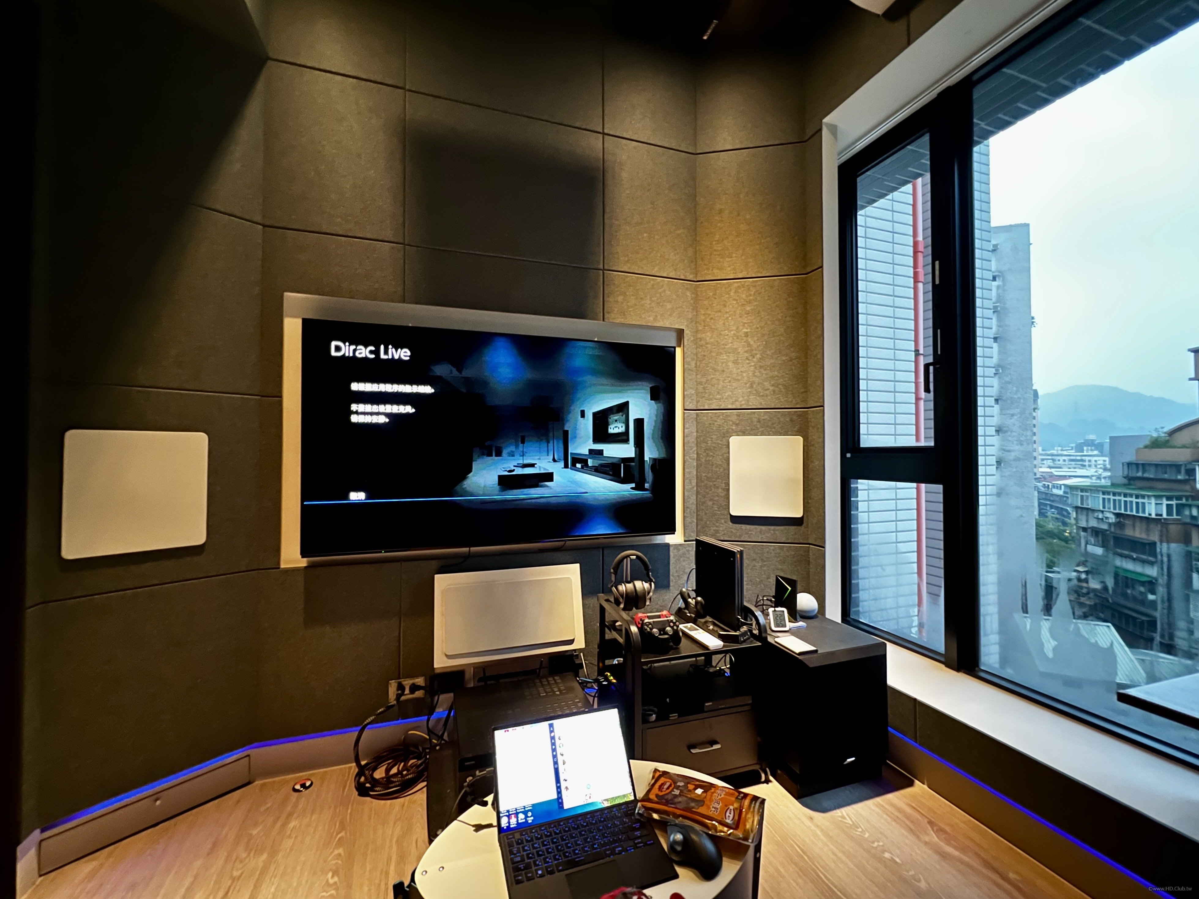 「因為是小空間,超低音我選KK DXD300。衝擊力強的DXD300再搭上性價比極高,低頻聽感較厚,下潛可達16hz的SW12。這兩支超低音透過Dirac DLBC調和,現在播放電影的低頻非常震撼!腳毛都豎起來了!」C先生眼睛微笑著說。