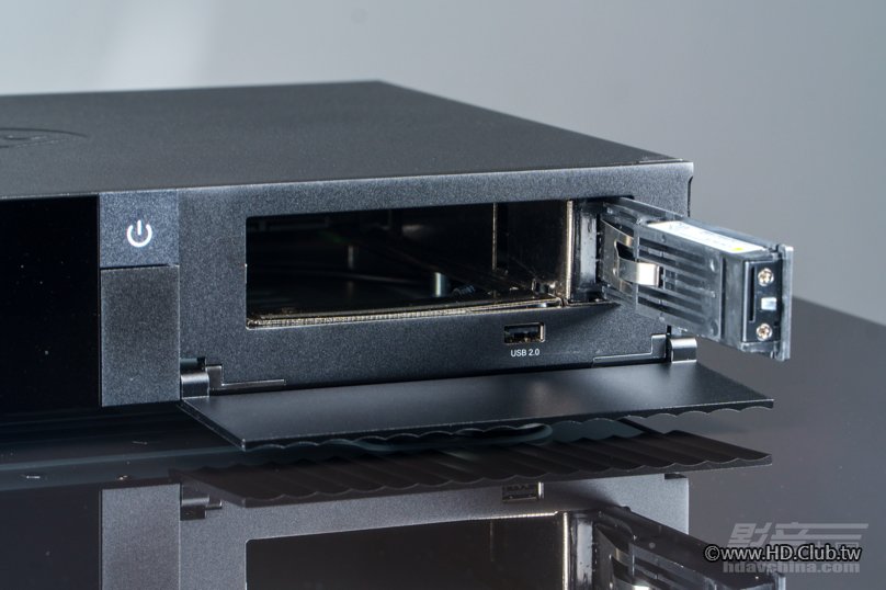 機身正面右側波浪形蓋板內則隱藏了3.5吋硬碟儲存,並附有一個USB 2.0接埠