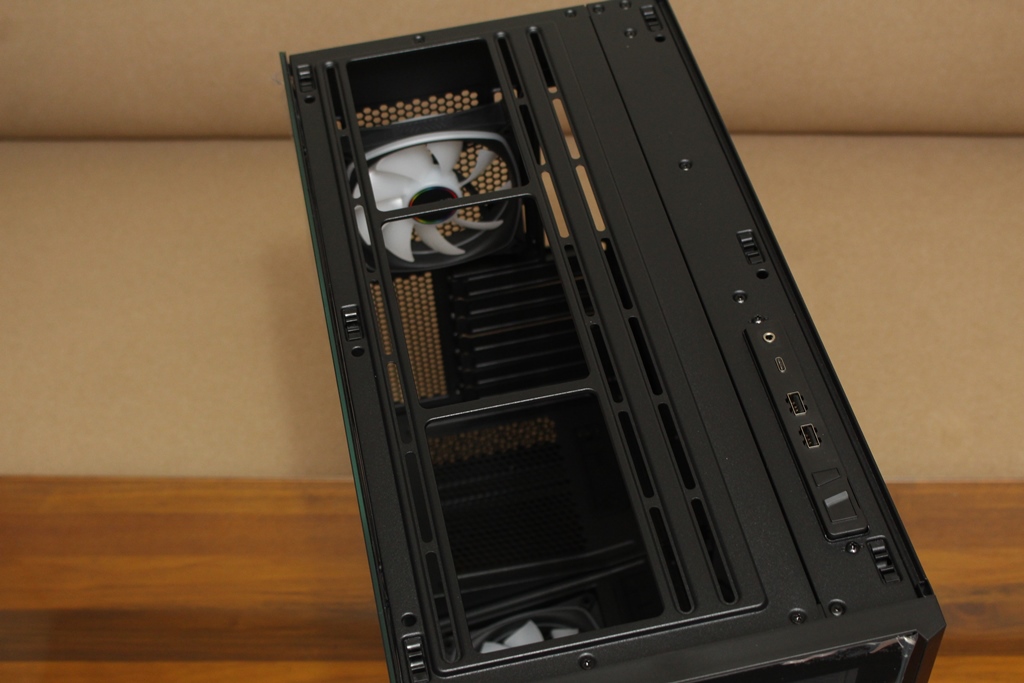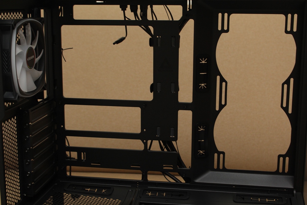 ▼內部空間與配置一覽,主機板上方、右方與下方有開孔設計方便走線