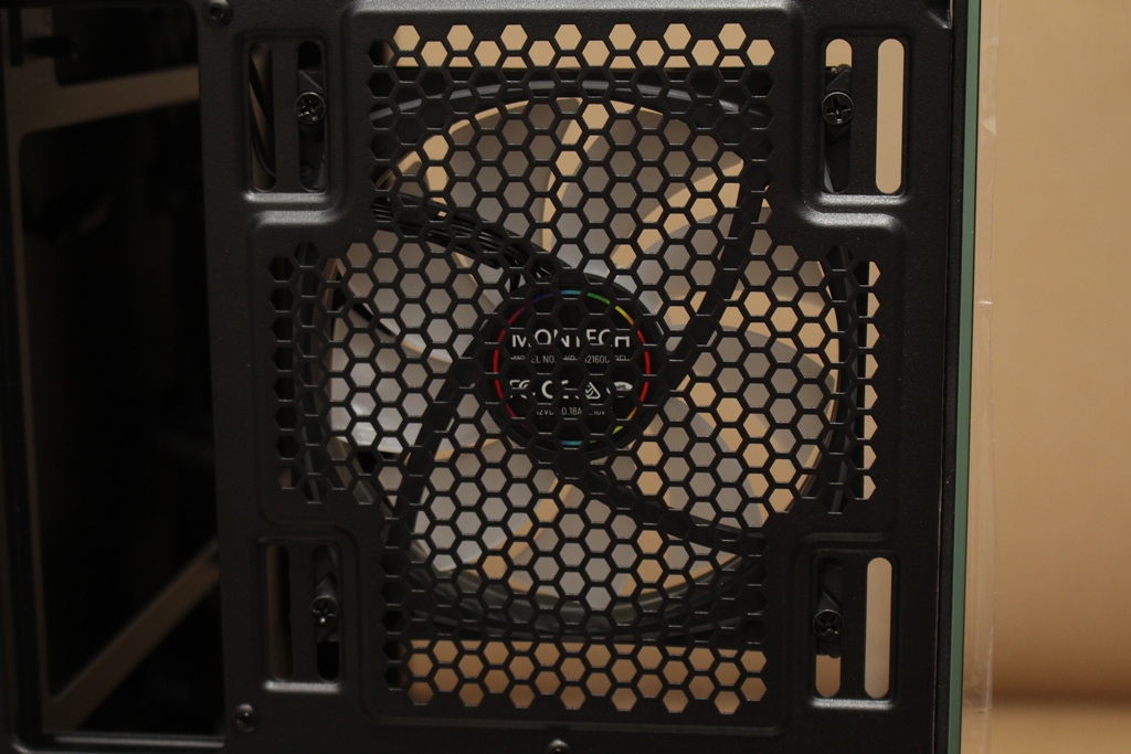 ▼後方可安裝一顆120mm/140mm風扇,支援120mm水冷排,已內建一顆AX120 PRO RGB風扇