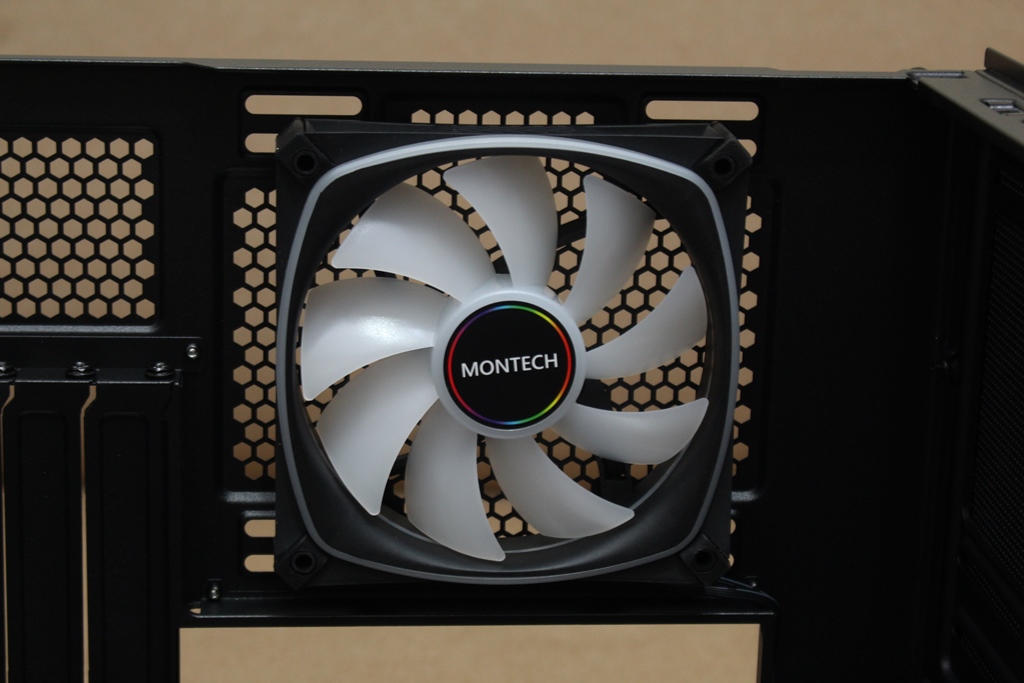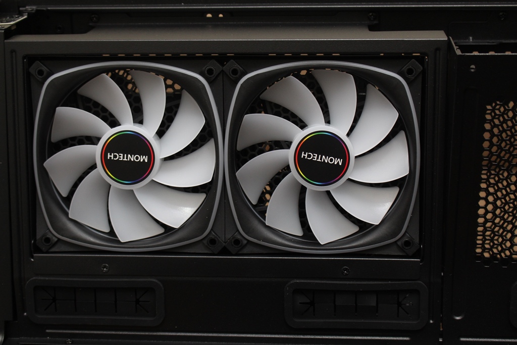 ▼主機板右邊還可以在安裝兩顆120mm/140mm風扇,支援120mm水冷排