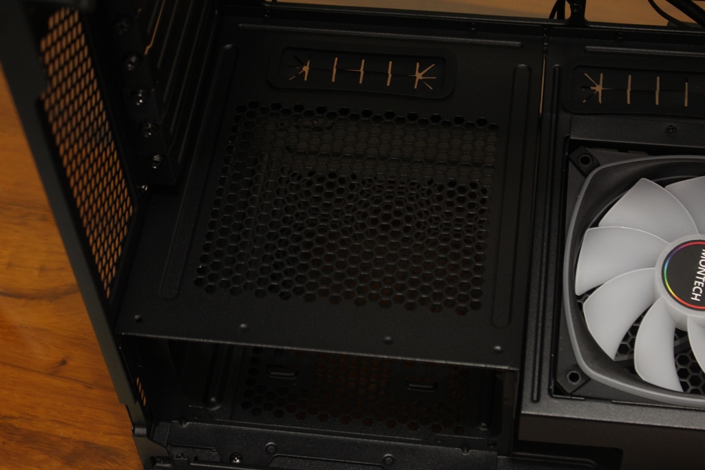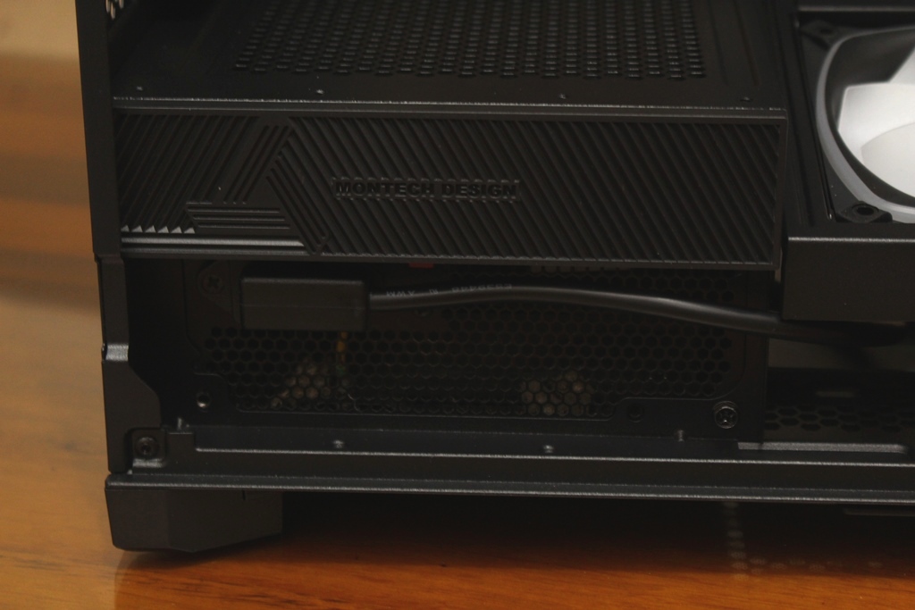 ▼電源供應器安裝位置,可支援160mm尺寸,前面可搭配配件中的磁吸飾蓋讓整體更簡潔美觀