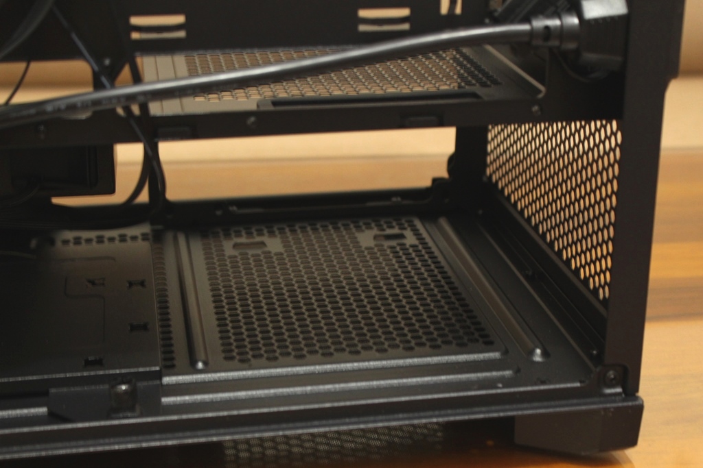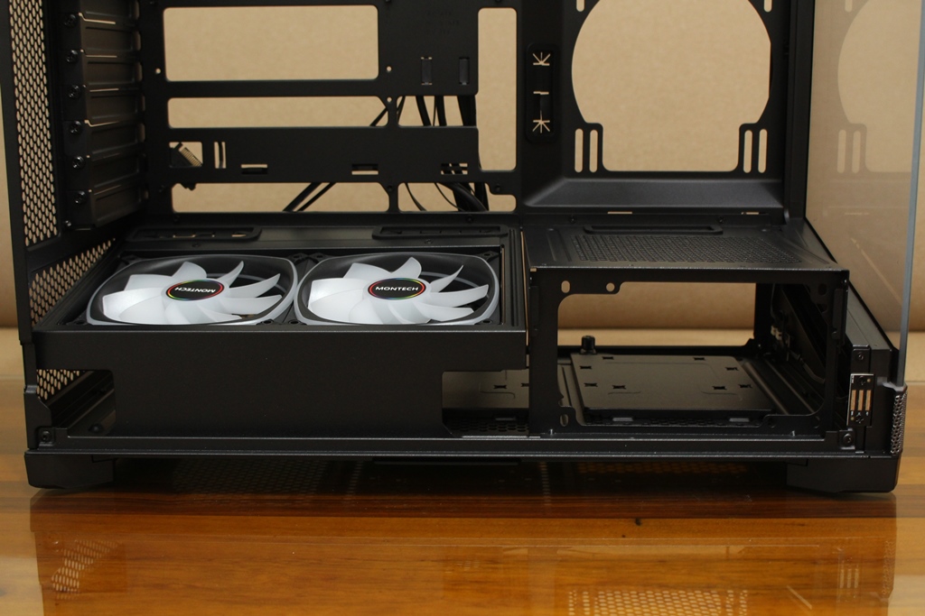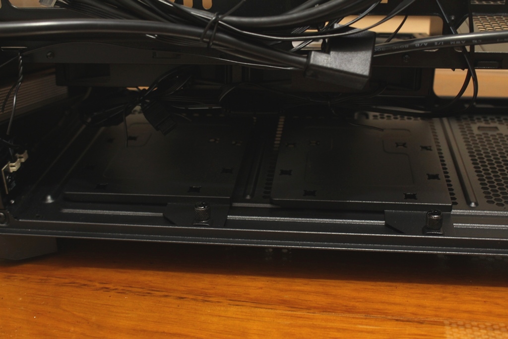 ▼底下有兩組硬碟支架,當電源供應器與風扇位置互換,硬碟支架位置也要跟著移動