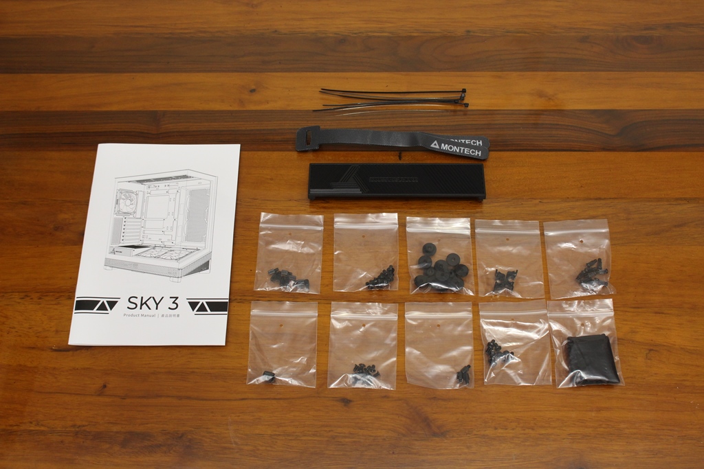 ▼配件有產品說明書、束線帶*4、魔鬼氈*2、拭鏡布、電源供應器飾蓋與各種固定螺絲