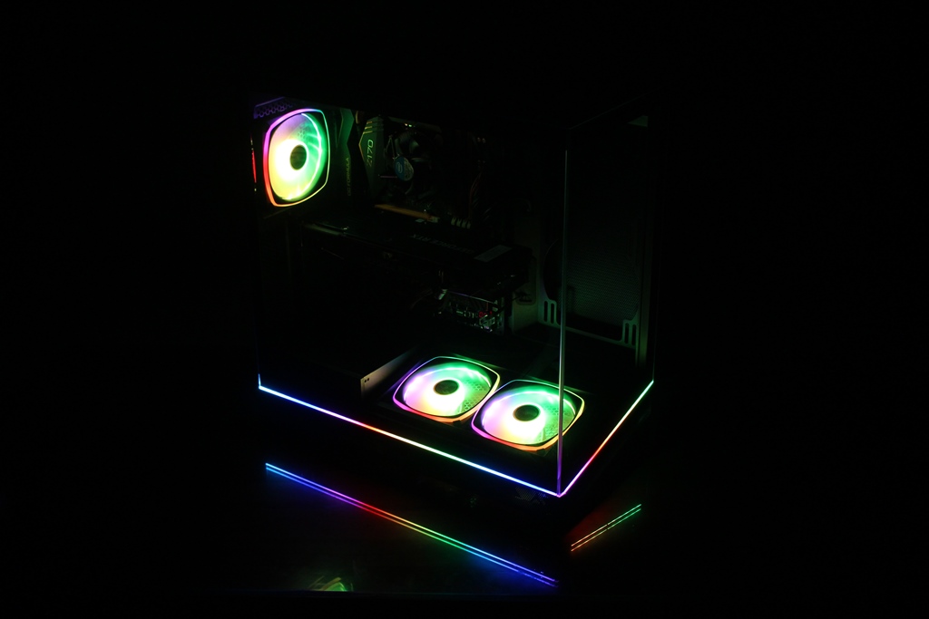 ▼開電後內建的三顆ARGB風扇,提供不錯的視覺饗宴
