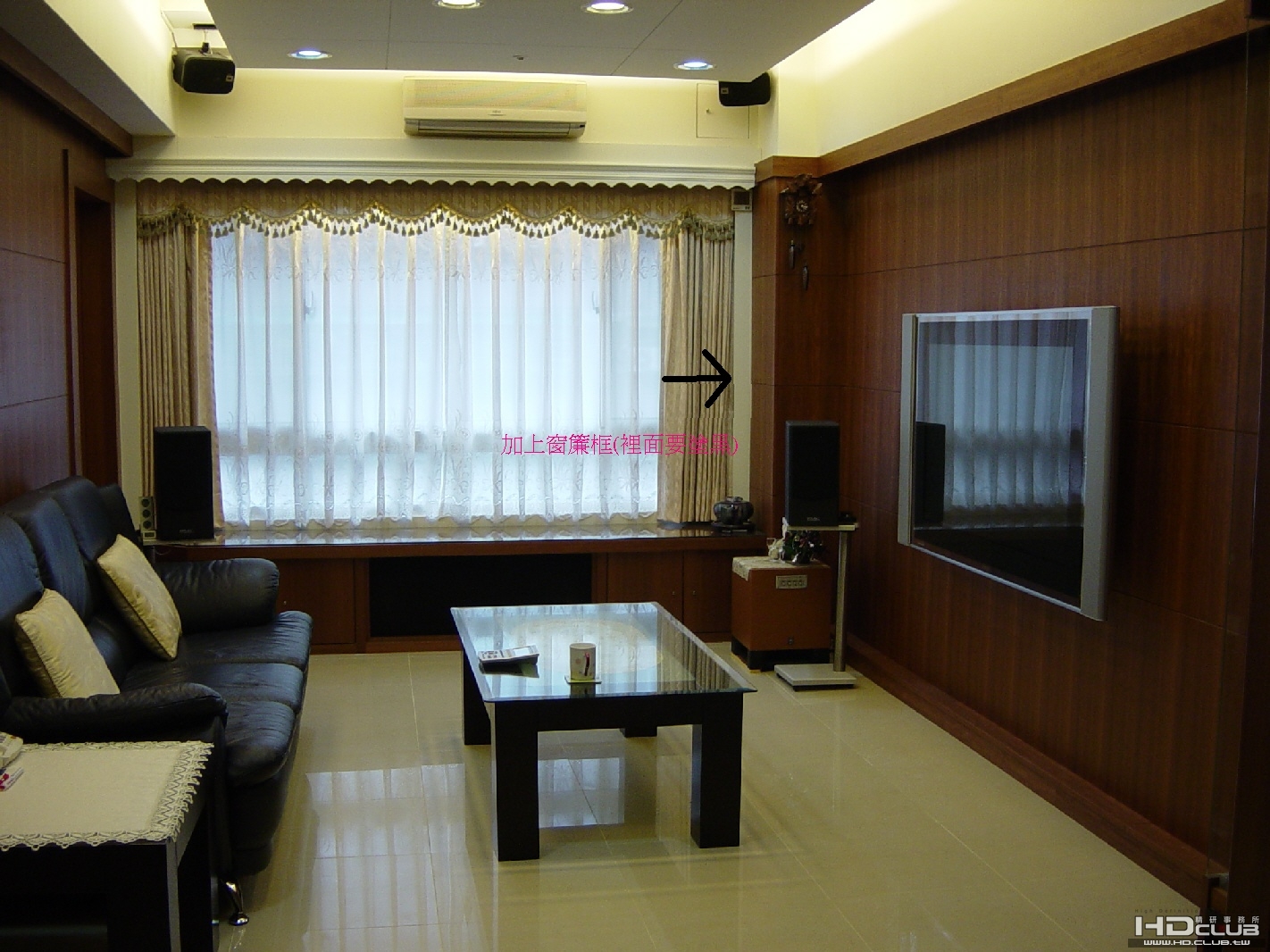 像我喇叭一次反射區就是窗戶,在玻璃上貼片保麗龍吸收過多的高音,從室內隔著窗簾也看不到醜醜的保麗龍,又多了阻隔光線的功用,雙重效果與大家分享。