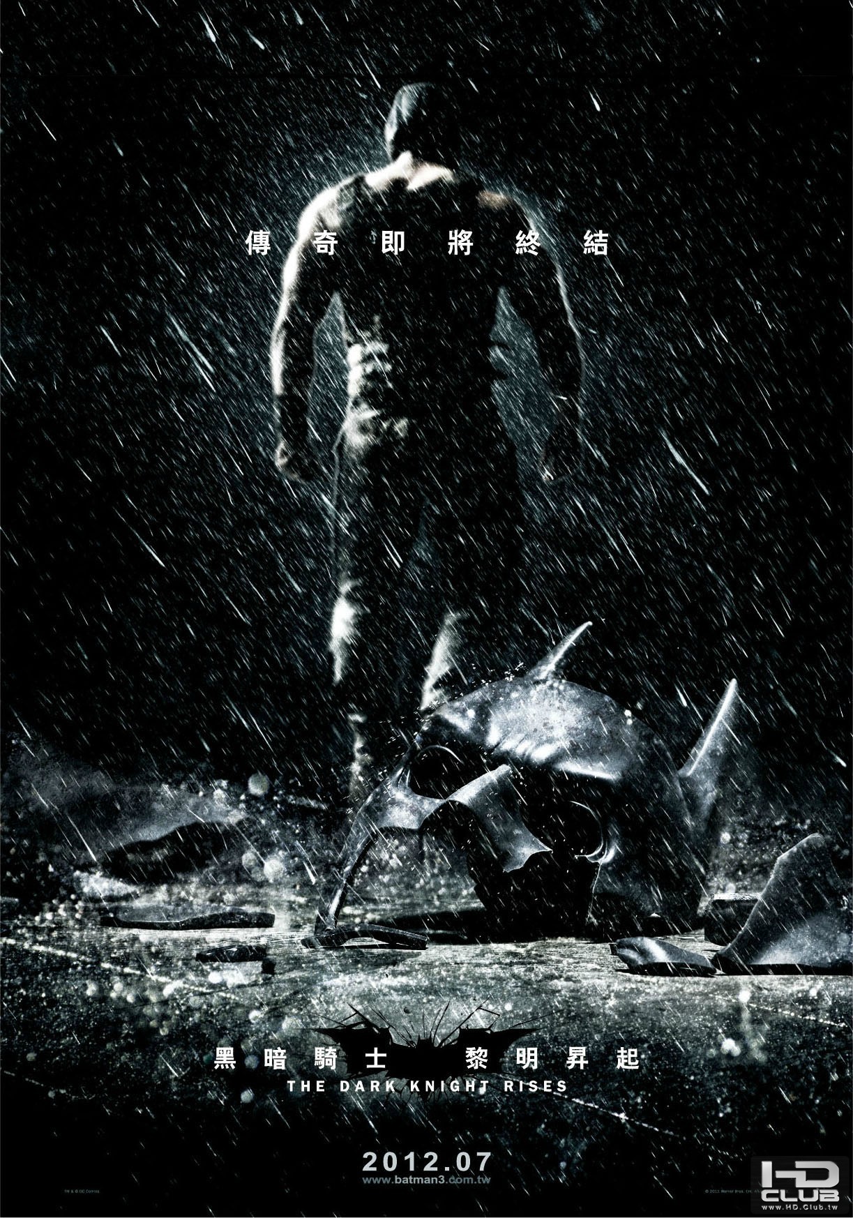 男主角克里斯汀貝爾(Christian Bale)談到他在TDKR劇組的最後一天拍攝,他表示當時是在紐約,場景則是在市中心一棟摩天大樓的樓頂。這一天開始時是與摩根費理曼(Morgan Freeman)在一起拍戲,結束時則是與安海瑟薇(Anee Hathaway)在一起,他在這一天的戲份都是穿著蝙蝠裝。