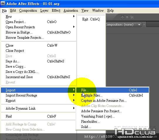 2.匯入圖形與設定合成檔(01-01),素材拖入到時間軸中: