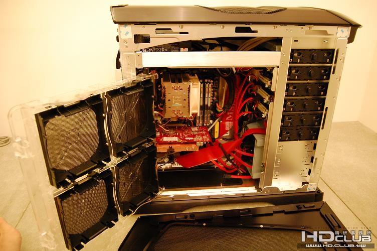 打開側邊風扇蓋版的模樣,線材真是凌亂,不過還好空間很大,應該比較沒差