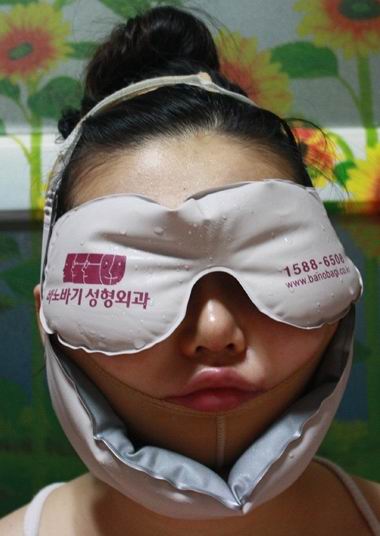 回家後戴上定型套(以免臉到時候歪掉或是.....................腫更大)