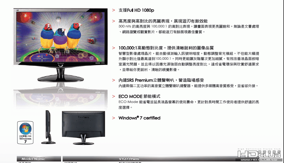 [新品速報] Viewsonic發表27吋的液晶顯示器 VX2739wm