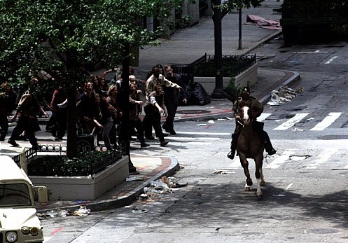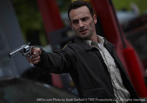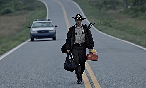 AMC《行屍走肉》(The Walking Dead)的劇照和劇場照。男主人公Rick Grimes警官(英國演員Andrew Lincoln扮演)首次亮相。該劇講述倖存者在僵屍橫行的世界裡求生存的故事,是電視史上第一部真正意義上的「僵屍劇集」。