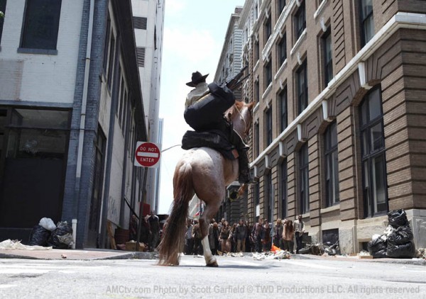 首集結束時,Rick在僵屍群中殺開一條血路,騎馬來到亞特蘭大城外。Rick被另一群僵屍包圍,眼看包圍圈越來越小……