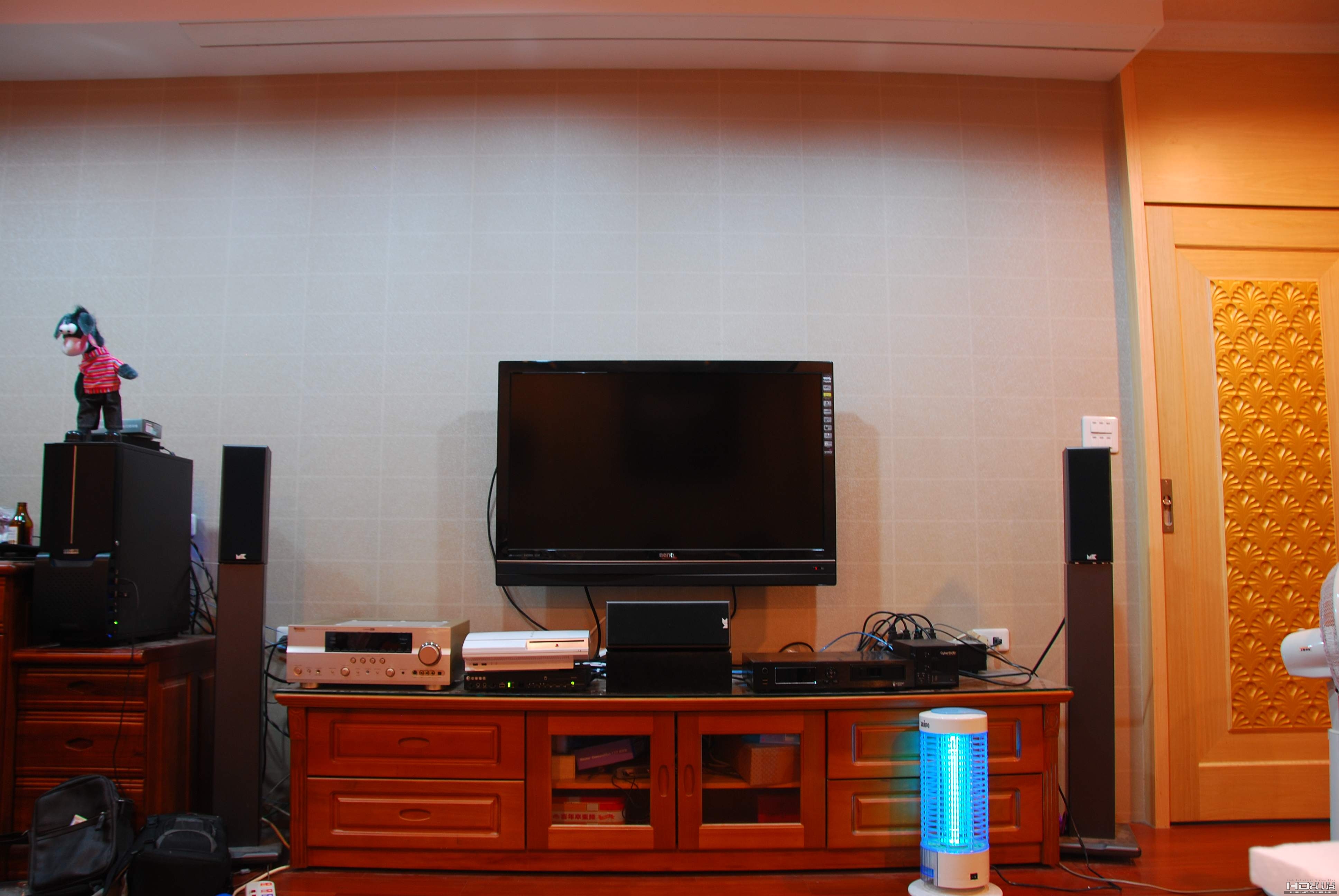 1. 基本的組合: 電視櫃與設備及看第四台專用的Benq PQ4242