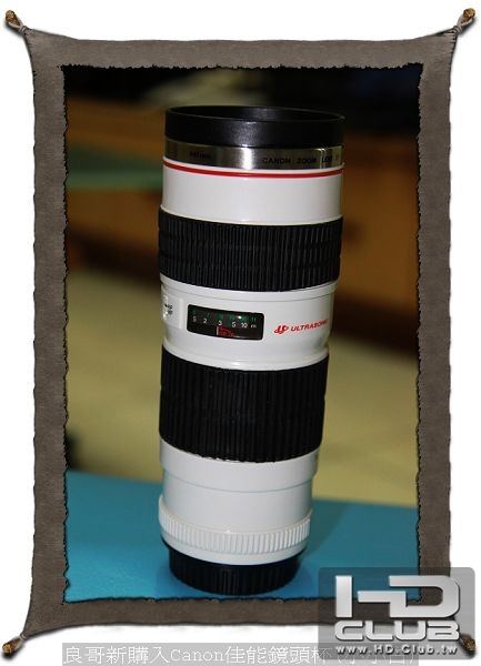 這就是良哥我期待已久的canon 佳能鏡頭杯子(小小白)~因為本身使用是Canon單眼相機~對於它周邊的各種商品及配件都超有興趣~只是真正的Canon 70-200mm L一支要價NT:45000媽呀~怎麼買的起ㄋ於是良哥我就努力的存私房錢~終於在2010年5月23日到手啦~~不過......是鏡頭杯過過乾癮也好