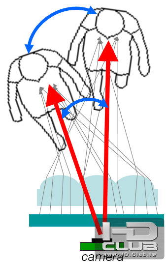 圖二 全視角裸眼3D技術, 可根據Camara判斷人眼位置來決定3D成像視角