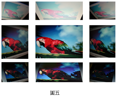 不論是VA面板或是FFS面板都屬於廣視角的技術, 視角都會比傳統筆電的TN mode面板要來得好, 而且不會有下視角 (視角)灰階反轉的問題 (如圖五, 最下面那排的照片, 鸚鵡的翅膀綠色、淺藍色的部份都變黑了. 而照片中左上方的深色的樹葉反而變亮了起來) 這在手持式/攜帶式產品是必要的. 當使用者將螢幕拿在手上翻來轉去的, 總不希望在某一個角度看到的圖案文字是黑的變白的, 而白的變黑的吧! 雖然說現在很多報導指出FFS具有低能耗、高透光率、高亮度、快速響應、無色偏等優點, 但嚴格說來, 快速響應這一點FFS與VA的差異並不大, 而低能耗與高穿透度可以看成同一件事, 穿透度高, 自然亮度就高, 要使用的背光亮度也就不需要這麼高, 能耗自然就降低.則還是要看面板的畫素是怎麼設計的,若是畫素更高的產品 (高解析度, 像是3.54吋的iPhone解析度有960x640) 不管是FFS或是VA, 都會因為面板穿透度的考量在設計上就犧牲了反應速度及大視角色偏的特性.