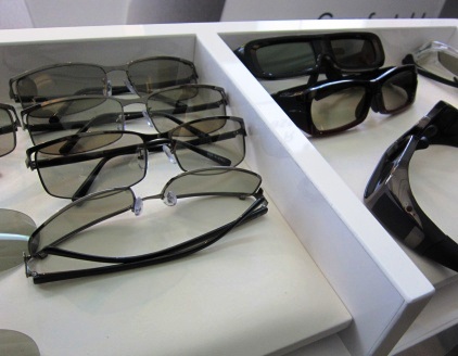 圖片左邊的是LG的輕量化FPR眼鏡,右邊的則是內建電池的主動式快門眼鏡