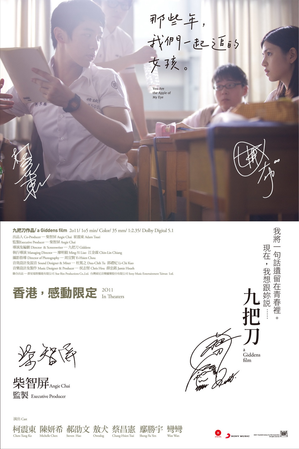 身為《那些年,我們一起追的女孩》的靈魂人物,因為先前賣力宣傳而至身體抱恙,九把刀在當天遺憾缺席。在2005年,九把刀寫下了《那些年,我們一起追的女孩》這本小說,以記述自己高中期間與一班兄弟共同追求一個女生的故事,“這差不多是我十年的青春記憶故事,當時我去參加她的婚禮,就突然想到了這個‘青春’故事的結局,然後,我就決定要把它搬上大銀幕。”2010年8月6日,《那些年,我們一起追的女孩》在九把刀的母校——彰化精誠中學正式開機,“選在母校拍攝,也是因為這裏有我太多的青春記憶,電影就是我的時光機。”對于把自己的“青春”故事搬上銀幕,九把刀也是為改編自己的“生命史”,“我在裏面做了一些微調,除了要彌補我當年無法完成的缺憾,它也同時是對我心靈跟青春的一個修補過程。”