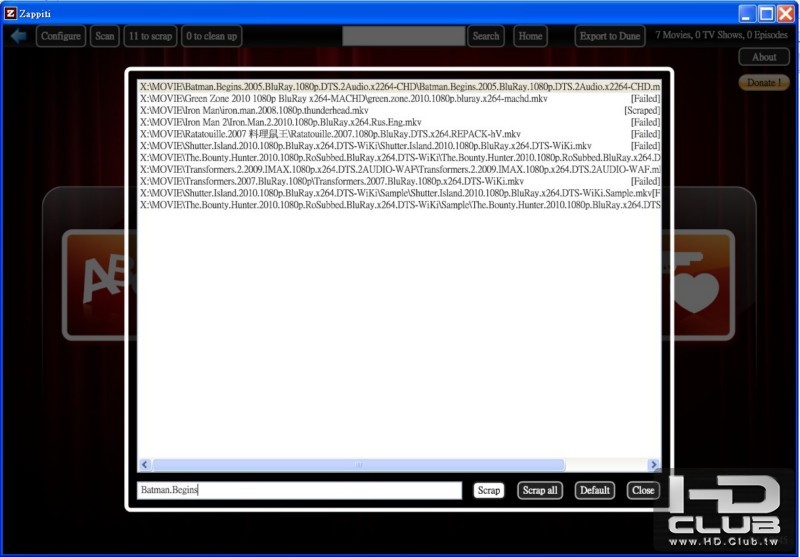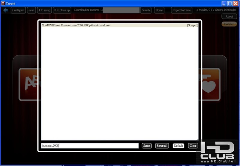 然後刪除硬碟上的zappiti資料夾,重新跑一次zappiti,並且只製作一部電影海報。