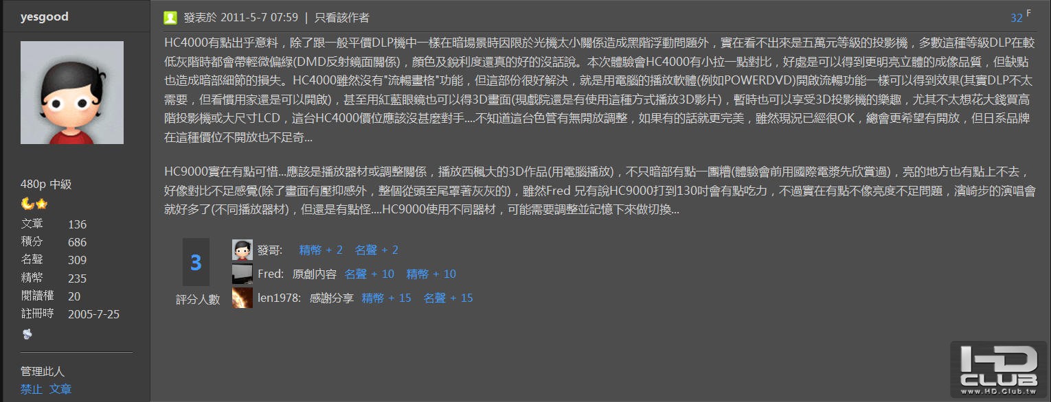 資深玩家Abby兄對HC4000的評價