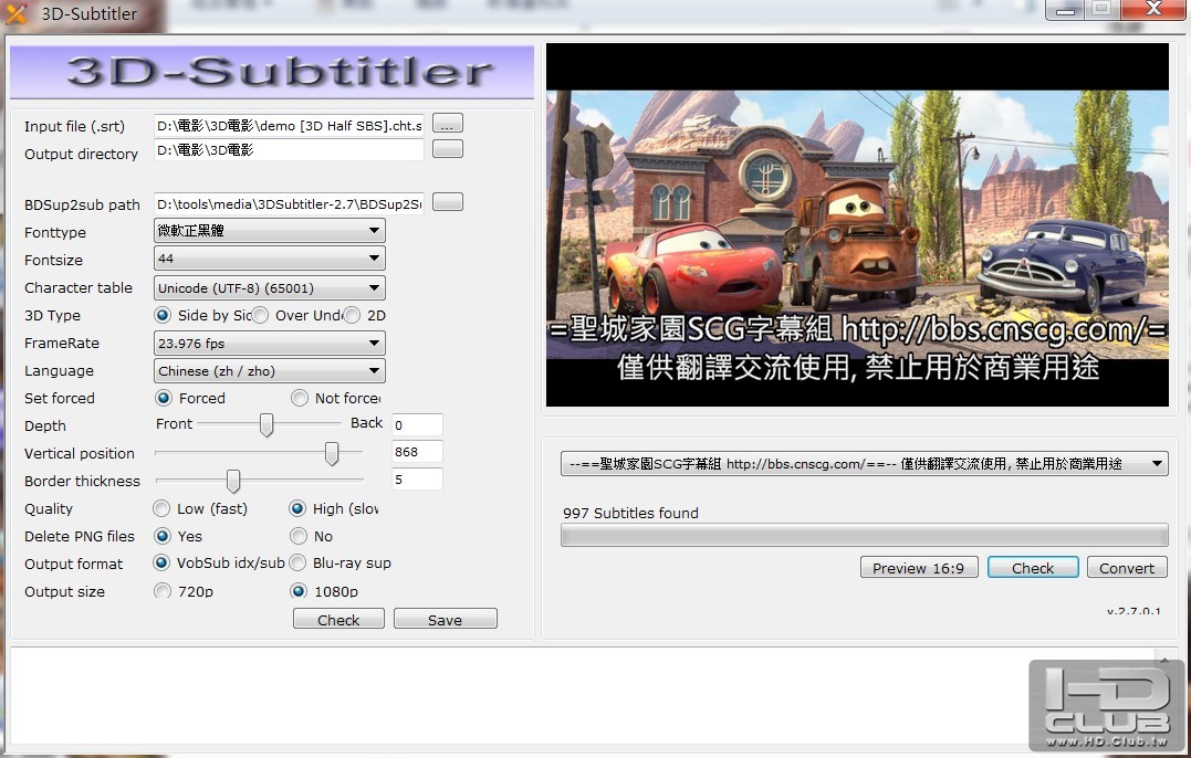 執行3DSubtitler, Inputfile選弄好的srt檔,
